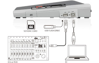 It records, as you would expect in a stand-alone unit, to SD card. I purchased two Sony SDHC 32gb fast write/access cards (2gb card was included). It also comes with a 4gb USB drive loaded with loops and a method to backup your projects.